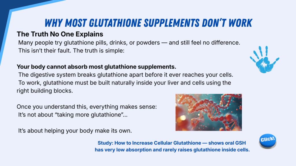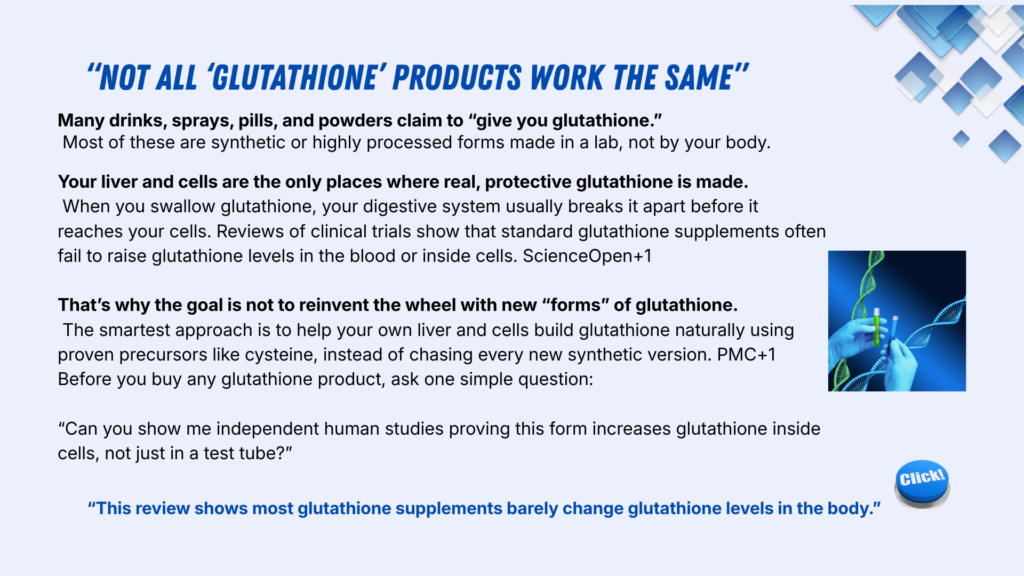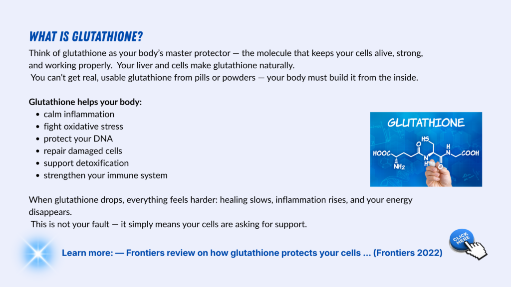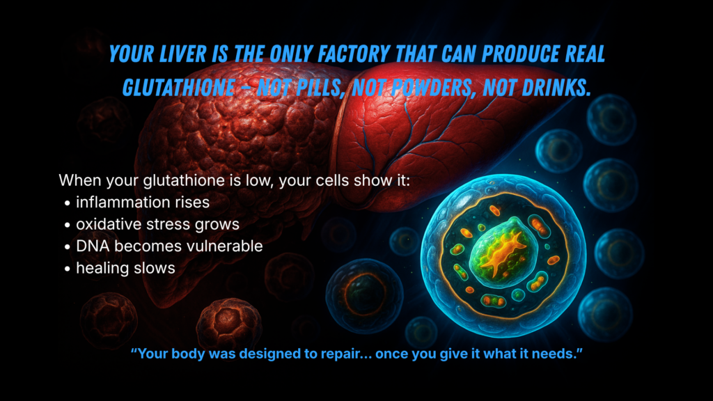 - 🏭 Glutathione is produced inside your body — mainly in the liver and cells.