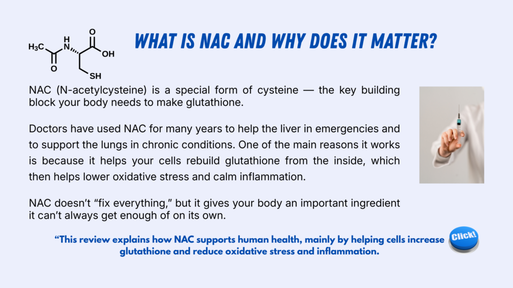 - 📘 N-acetylcysteine (NAC) is the most studied glutathione precursor.