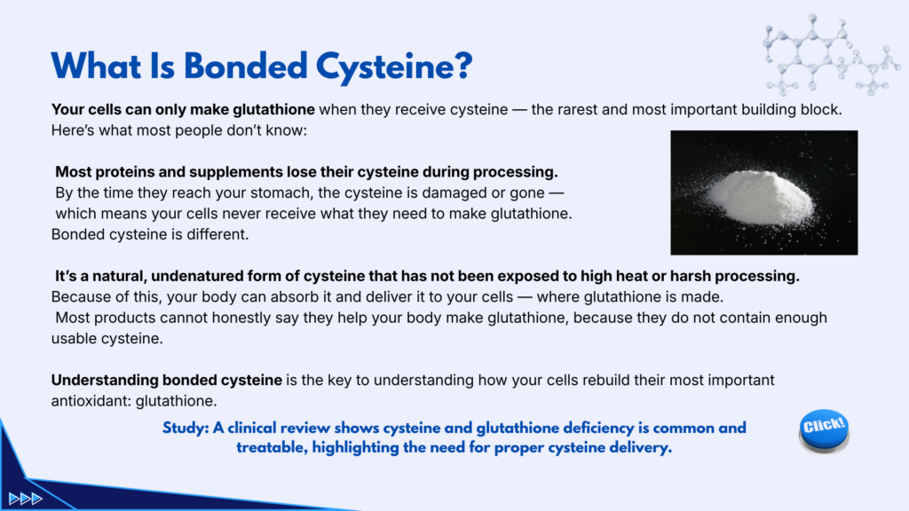 - 🧪 Glutathione levels depend on cysteine availability.