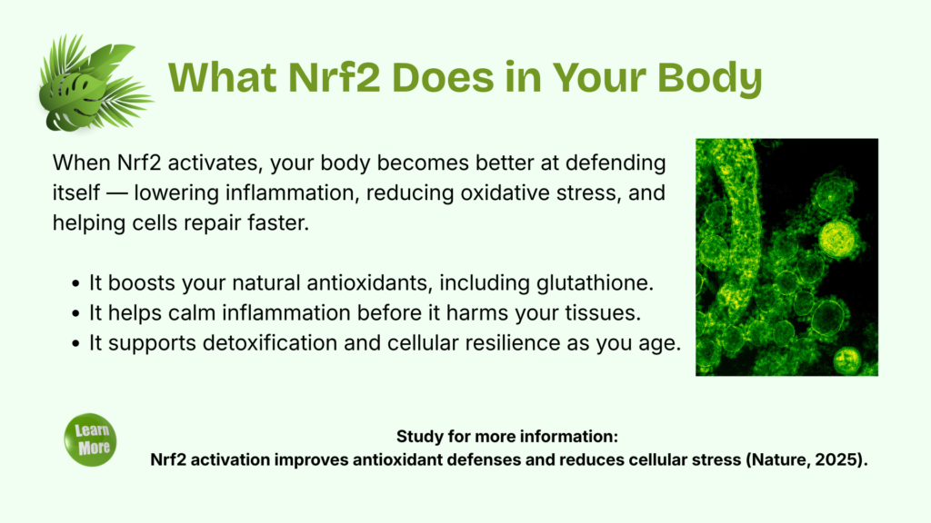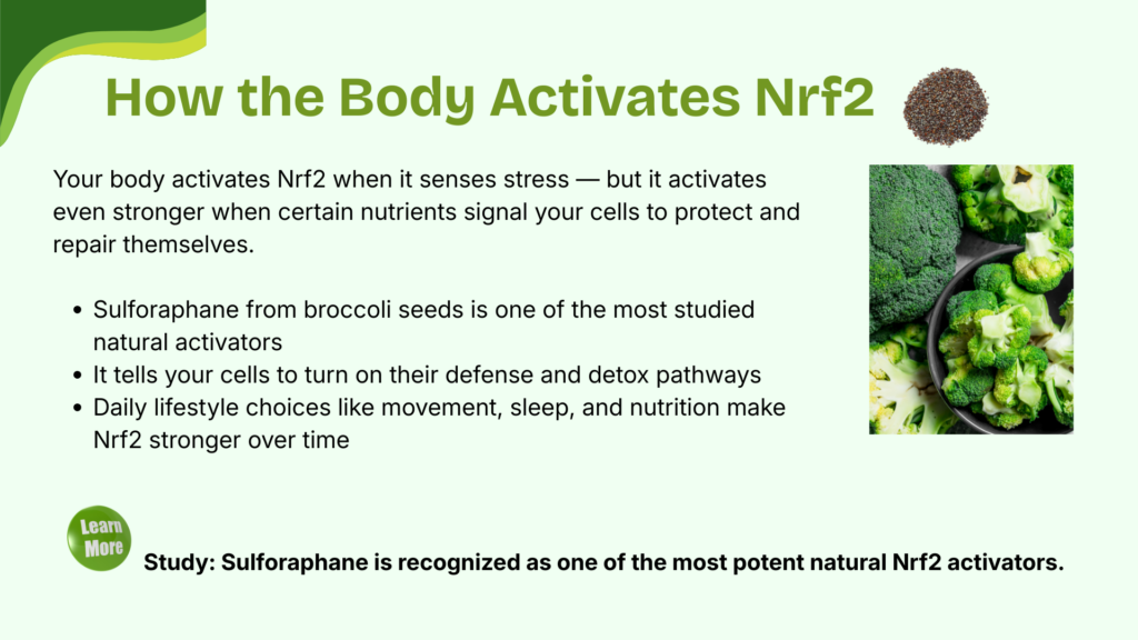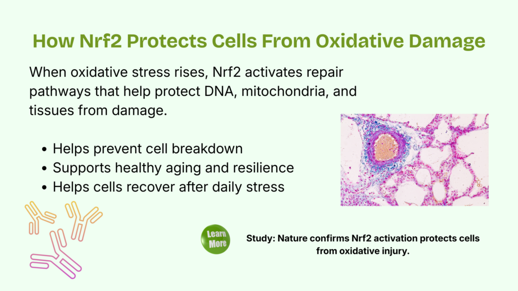 🧬 1. What Is Nrf2 and Why It Matters Study Focus: Nrf2 as the master regulator of antioxidant defense and cellular protection. Why it matters: This study explains how Nrf2 activates the body’s internal defense system when oxidative stress rises — helping cells protect themselves and restore balance. 🔗 https://pmc.ncbi.nlm.nih.gov/articles/PMC9774434/
