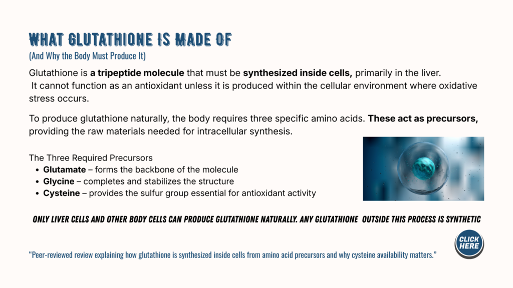 The liver and cells produce glutathione naturally. Understanding this process can help you make more informed decisions about nutrition, lifestyle, and supplementation.