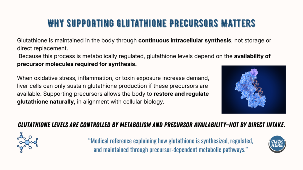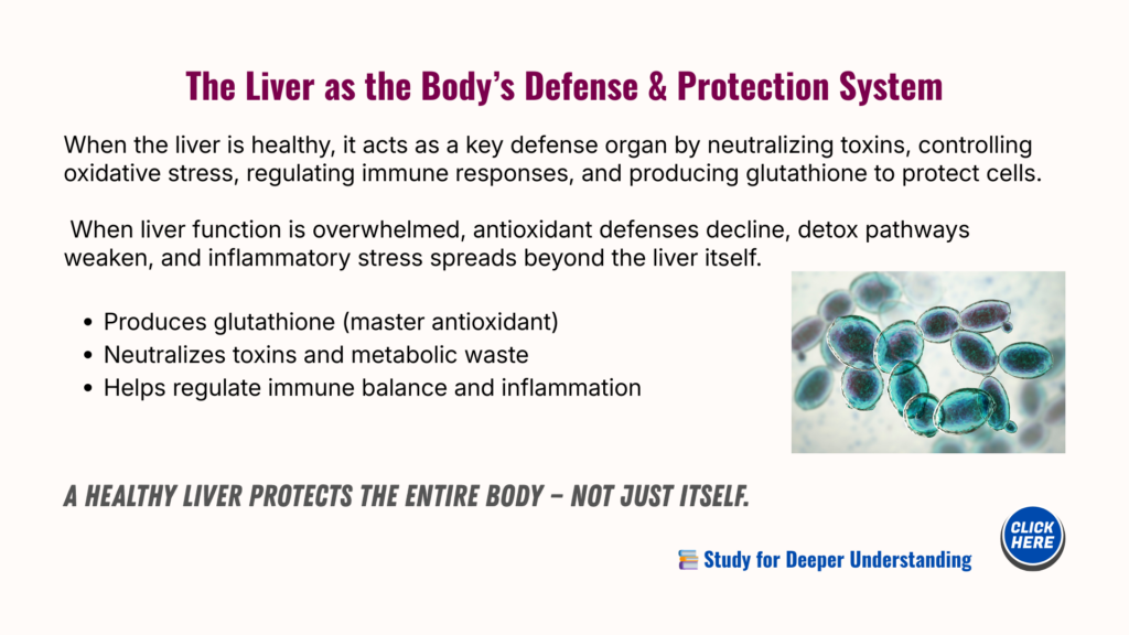 This page explores how the liver supports the body through glutathione synthesis, with the liver serving as the body’s primary production and distribution center, and why this process matters during inflammatory and metabolic stress.